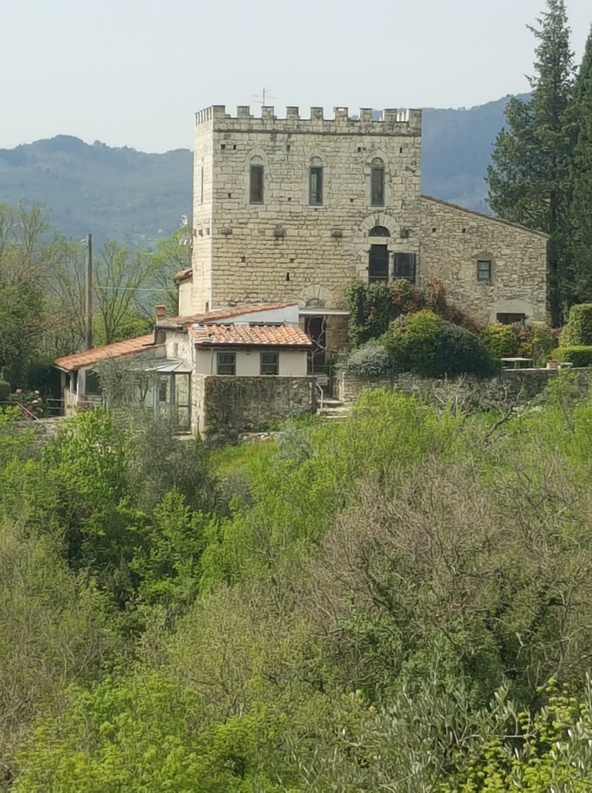 “There it is!” we both exclaimed. Our rental car had just emerged from a tree tunnel surrounding a bumpy dirt road which served as our kilometer-long driveway to the Thirteenth Century watchtower cum apartment we had rented online many months before. The road, along a ridge across a hillside and small valley, ended in front of a gated fence.
